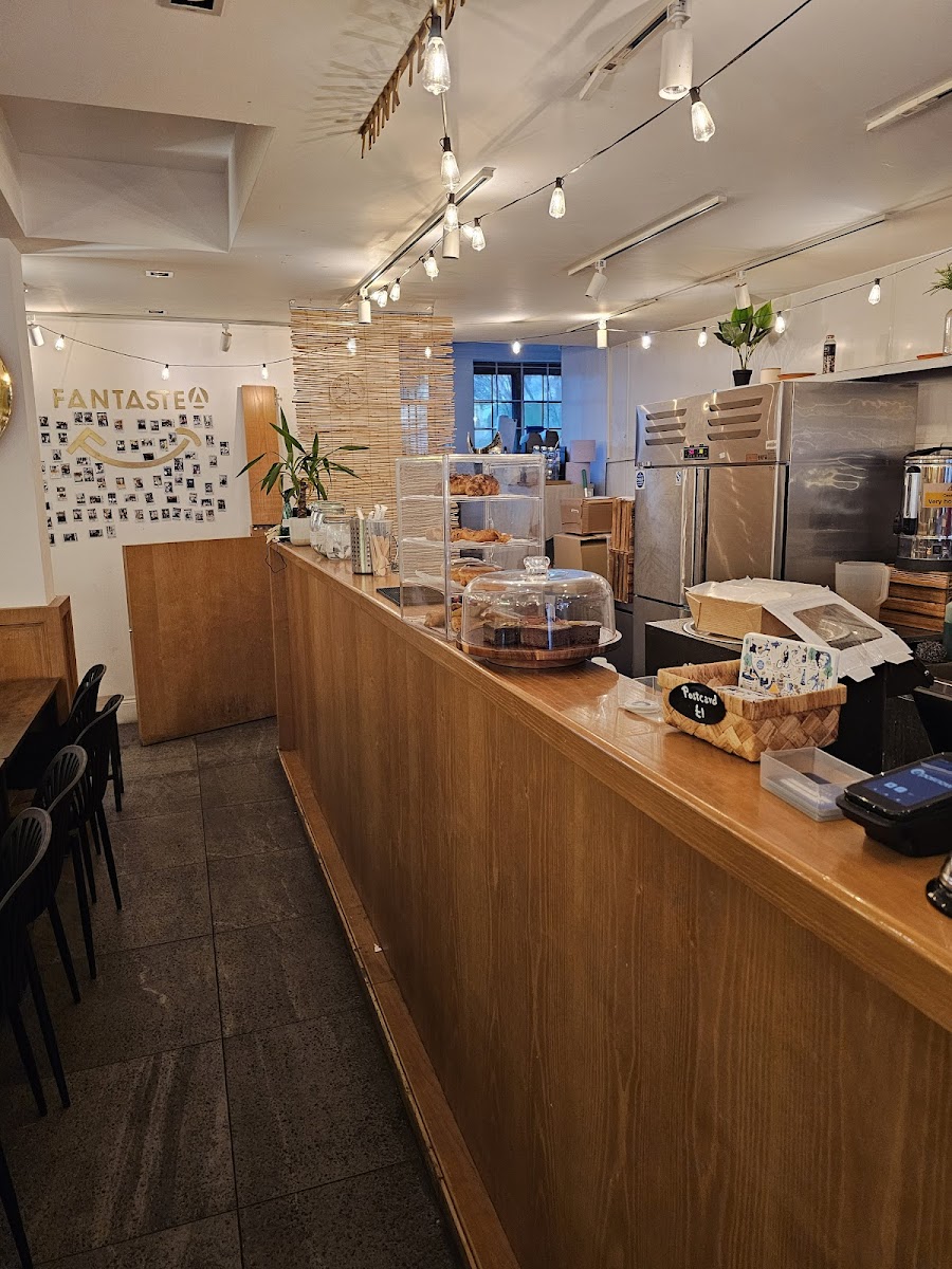 The shop’s interior is a blend of modern and cozy elements, offering a warm and welcoming ambiance for solo visitors, groups, or even casual business meetings. Whether you're seeking a quick break with a hot drink or looking to enjoy a relaxing afternoon, Fantastea provides a comfortable spot to settle in.